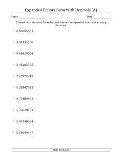 Converting Decimals from Standard to Expanded Factors Form Using Fractions (3 Decimal Places) Converting Decimals from Standard to Expanded Factors Form Using Fractions (4 Decimal Places) Converting Decimals from Standard to Expanded Factors Form Using Fractions (5 Decimal Places) Converting Decimals from Standard to Expanded Factors Form Using Fractions (6 Decimal Places) Converting Decimals from Standard to Expanded Factors Form Using Fractions (7 Decimal Places) Converting Decimals from Standard to Expanded Factors Form Using Fractions (8 Decimal Places) Converting Decimals from Standard to Expanded Factors Form Using Fractions (9 Decimal Places)