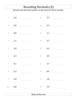 Further down the page, rounding, comparing and ordering decimals worksheets allow students to gain more comfort with decimals before they move on to performing operations with decimals. There are many operations with decimals worksheets throughout the page. It would be a really good idea for students to have a strong knowledge of addition, subtraction, multiplication and division before attempting these questions.