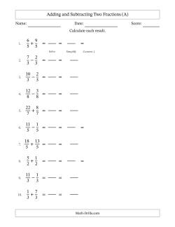 Adding and Subtracting Proper and Improper Fractions with Equal Denominators and Some Simplifying (Fillable, Savable, Printable) ✎ Adding and Subtracting Proper and Improper Fractions with Similar Denominators and Some Simplifying (Fillable, Savable, Printable) ✎ Adding and Subtracting Proper and Improper Fractions with Unlike Denominators and Some Simplifying (Fillable, Savable, Printable) ✎ Adding and Subtracting Proper and Improper Fractions with Equal Denominators and Some Simplifying (Printable Only) Adding and Subtracting Proper and Improper Fractions with Similar Denominators and Some Simplifying (Printable Only) Adding and Subtracting Proper and Improper Fractions with Unlike Denominators and Some Simplifying (Printable Only)