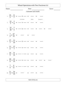 Mixing up the signs on operations with fractions worksheets makes students pay more attention to what they are doing and allows for a good test of their skills in more than one operation.