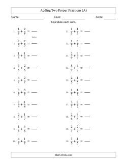 Adding Two Proper Fractions with Similar Denominators, Proper Fractions Results, and No Simplifying (Fillable, Savable, Printable) ✎ Adding Two Proper Fractions with Similar Denominators, Proper Fractions Results, and No Simplifying (Fillable, Savable, Printable) ✎ Adding Two Proper Fractions with Similar Denominators, Proper Fractions Results, and Some Simplifying (Fillable, Savable, Printable) ✎ Adding Two Proper Fractions with Similar Denominators, Proper Fractions Result, and No Simplifying (Printable Only) Adding Two Proper Fractions with Similar Denominators, Proper Fractions Result, and All Simplifying (Printable Only) Adding Two Proper Fractions with Similar Denominators, Proper Fractions Result, and Some Simplifying (Printable Only)