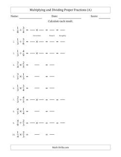 Multiplying and Dividing Two Proper Fractions with No Simplifying (Fillable, Savable, Printable) ✎ Multiplying and Dividing Two Proper Fractions with All Simplifying (Fillable, Savable, Printable) ✎ Multiplying and Dividing Two Proper Fractions with Some Simplifying (Fillable, Savable, Printable) ✎ Multiplying and Dividing Two Proper Fractions with No Simplifying (Printable Only) Multiplying and Dividing Two Proper Fractions with All Simplifying (Printable Only) Multiplying and Dividing Two Proper Fractions with Some Simplifying (Printable Only)